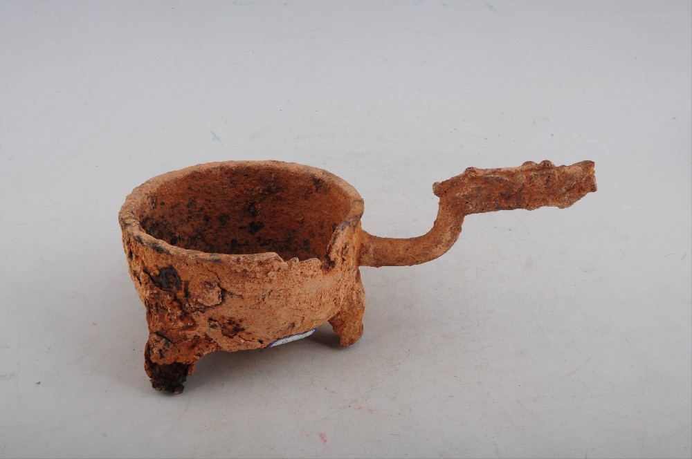 民(mín)國(guó)白(bái)釉紫口螭耳六方<₹←×瓶