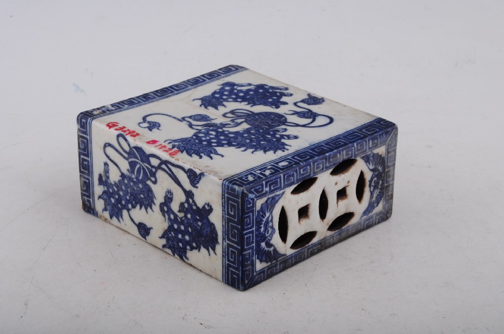清灰釉青花(huā)龍鳳牡丹紋雙獅耳瓶