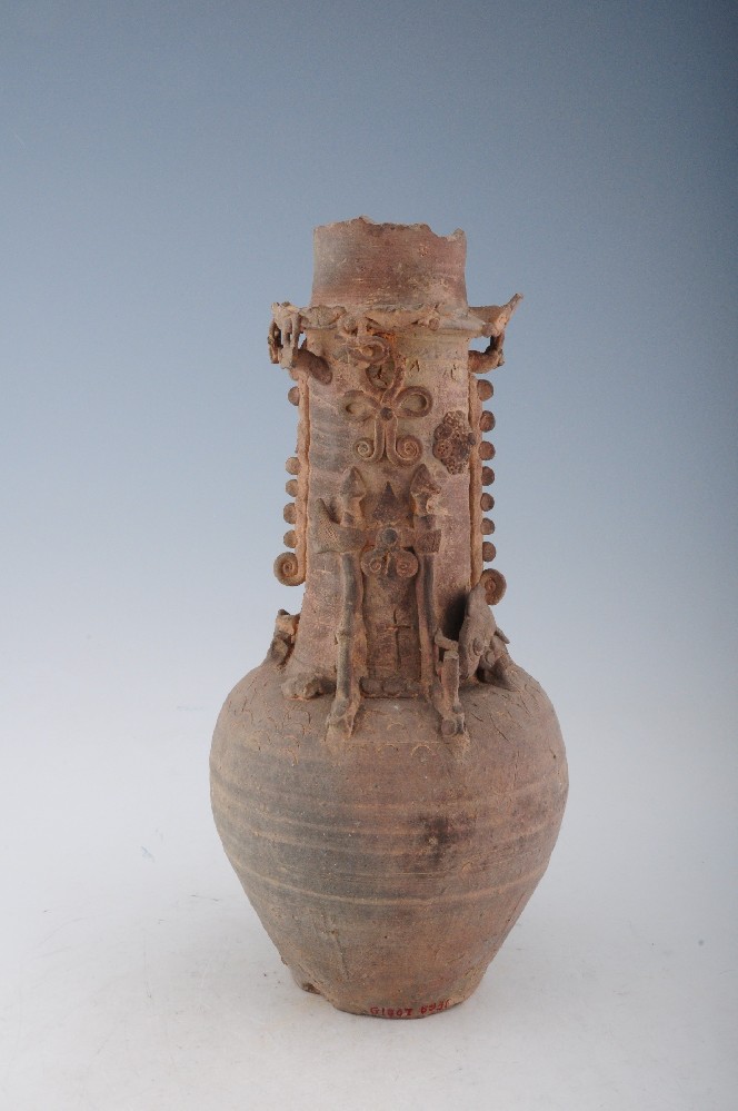 民(mín)國(guó)白(bái)釉紫口螭耳六方瓶