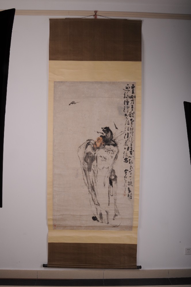 清灰釉青花(huā)龍鳳牡丹紋雙獅耳瓶