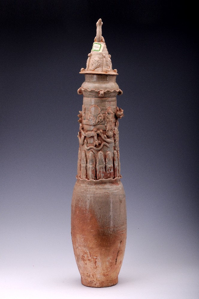 清灰釉青花(huā)龍鳳牡丹紋雙獅耳瓶