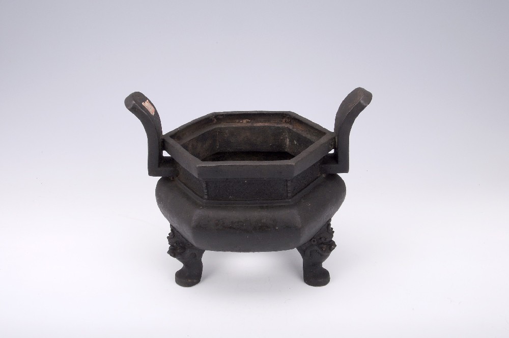 民(mín)國(guó)白(bái)釉紫口螭耳§ ±六方瓶