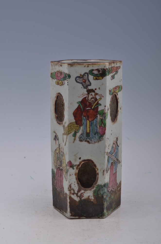民(mín)國(guó)白(bái)釉紫口螭 φ耳六方瓶