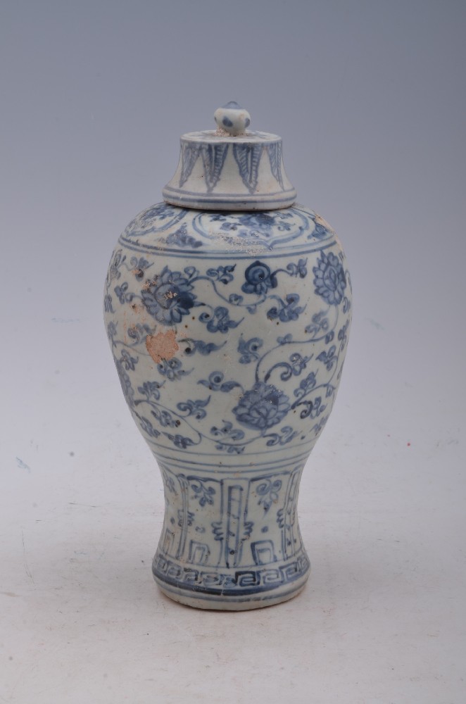 清灰釉青花(huā)龍鳳牡丹紋雙獅耳瓶