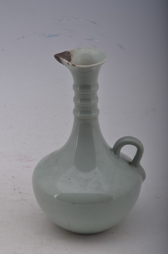 清灰釉青花(huā)龍鳳牡丹紋雙獅耳瓶
