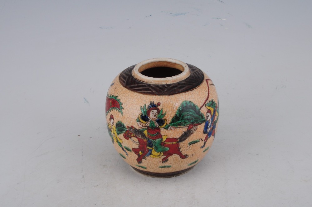 民(mín)國(guó)粉彩山(shān)水(shuǐ)人(rén)物(wù)紋÷ 象耳戽桶瓶