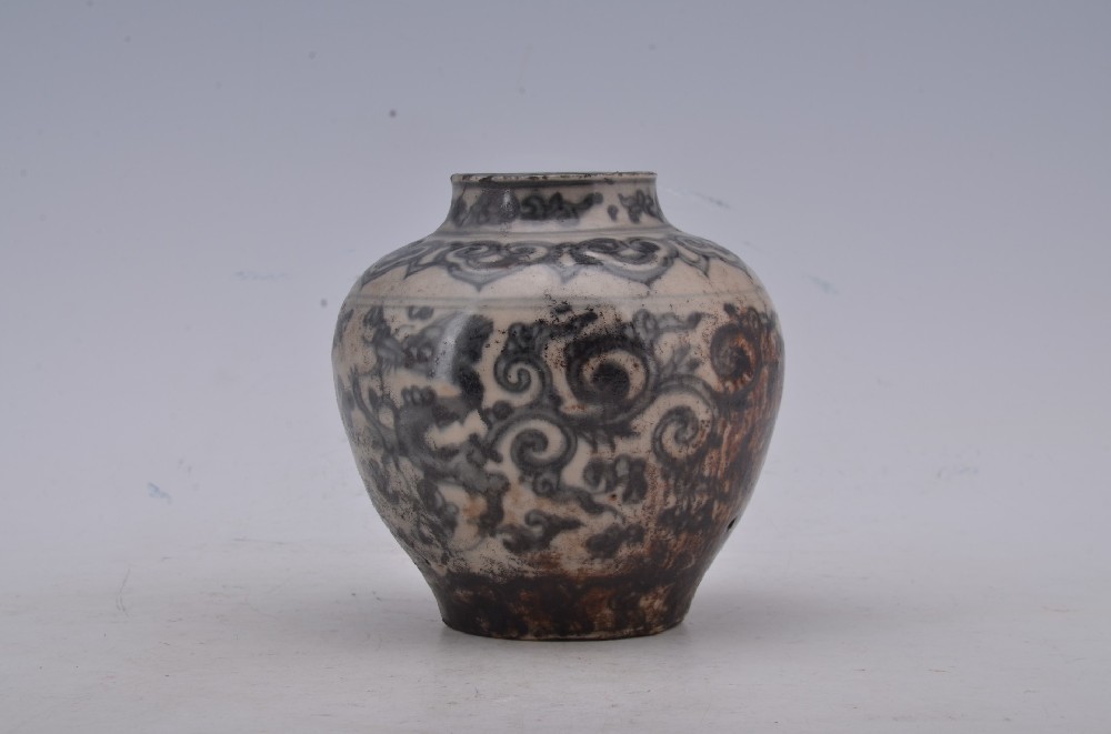清灰釉青花(huā)龍鳳牡丹紋雙獅耳瓶