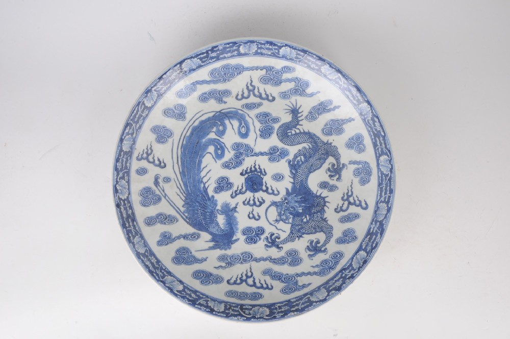 清灰釉青花(huā)龍鳳牡丹紋雙獅耳瓶