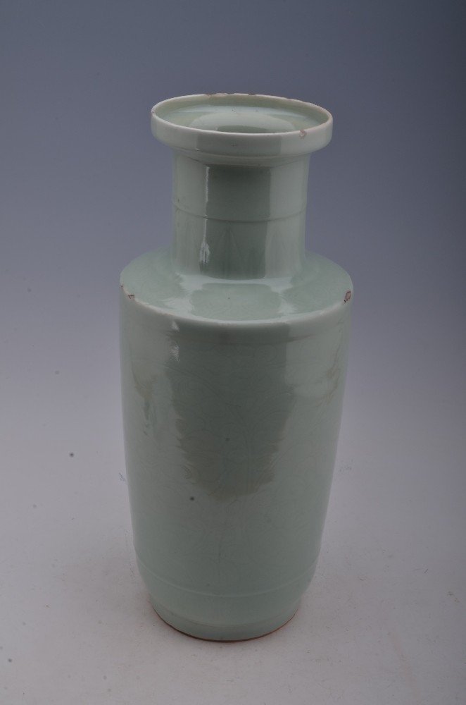 民(mín)國(guó)白(bái)釉紫口螭耳六方瓶