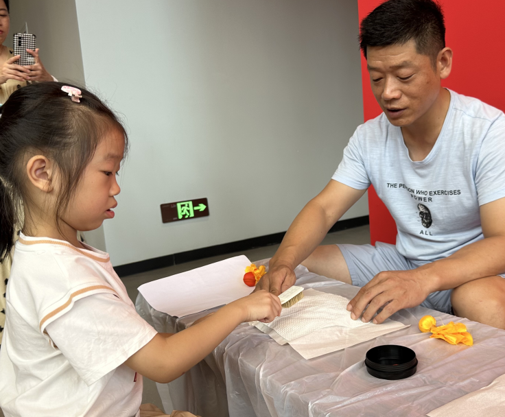 一(yī)張張素色宣紙(zhǐ),一(yī)盞盞古韻石刻。在社教老(lǎo)師(shī)¥ ♣★的(de)講授和(hé)協助下(xià)↕ε,孩子(zǐ)們迅速掌握了(le)拓印技(jì)巧,紛紛鋪上(shφ↔δàng)宣紙(zhǐ),拿(ná)起抹刷,俨然成為(wèi)了(le)≥>λ→一(yī)個(gè)個(gè)傳統手工(gō®γng)藝的(de)小(xiǎo)小(xiǎo)傳承人(rén)。