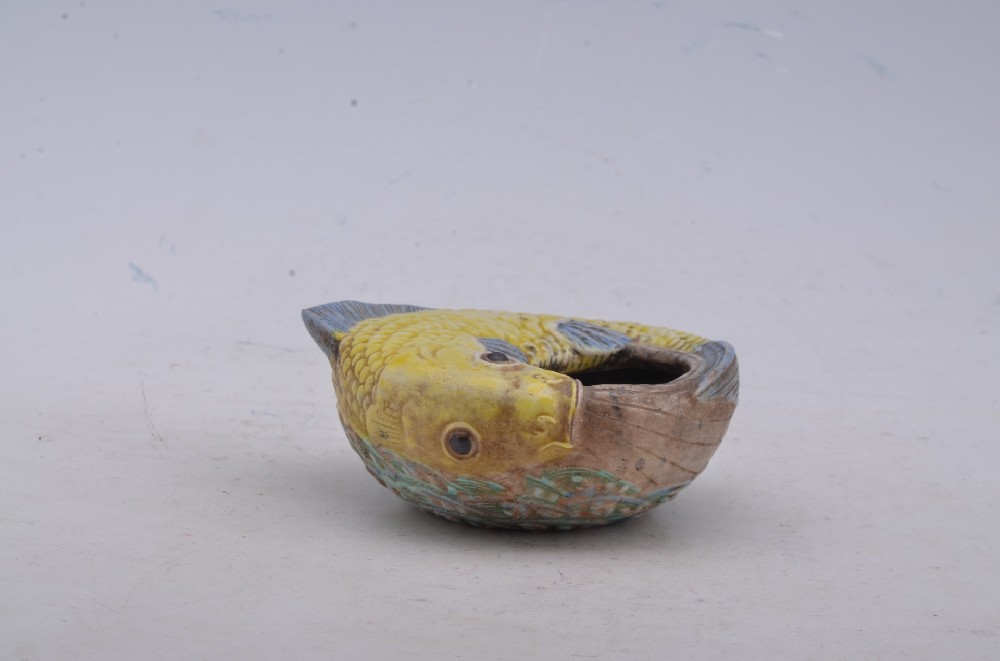 民(mín)國(guó)黃(huáng)綠( γ'lǜ)藍(lán)釉鯉魚形水(shuǐ)盂