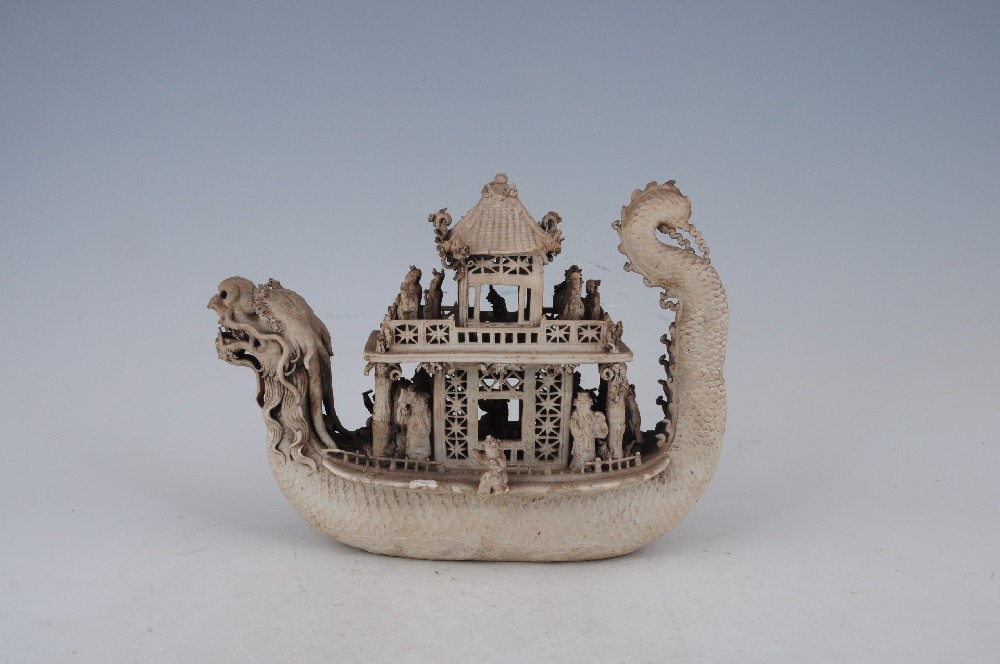 民(mín)國(guó)露胎素瓷雕刻龍舟