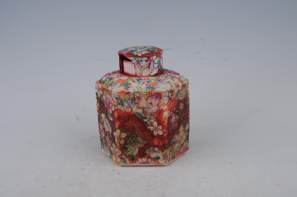 民(mín)國(guó)白(bái)釉紫口螭耳六方瓶