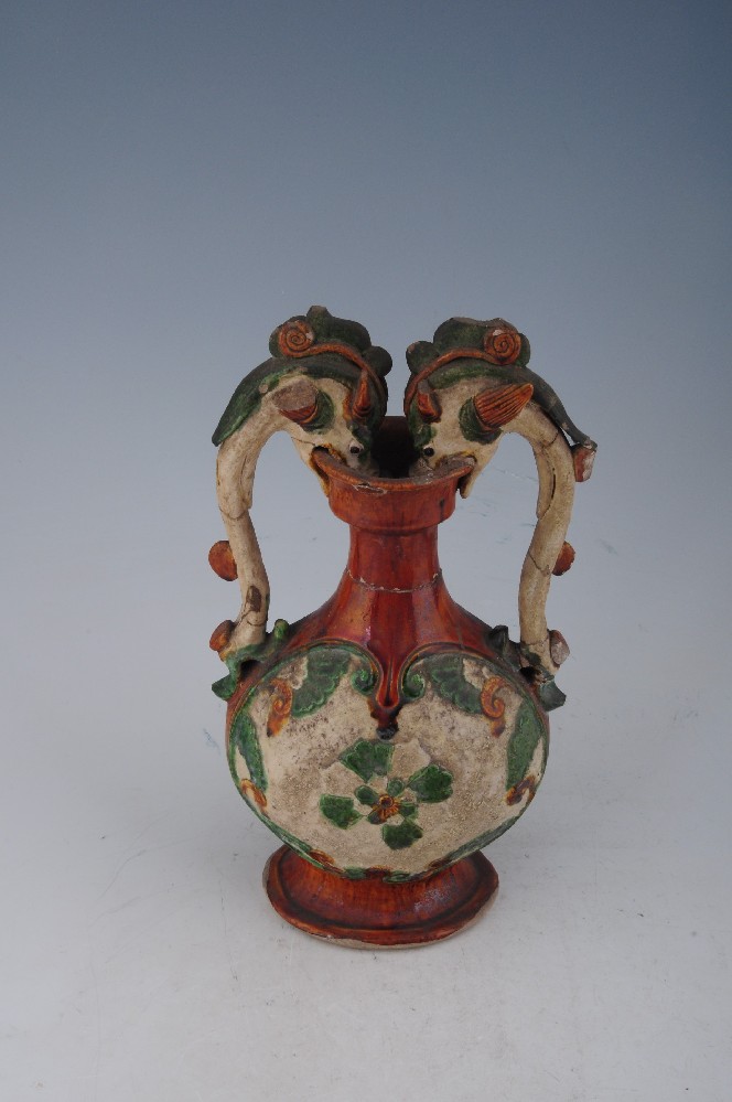 民(mín)國(guó)白(bái)釉紫口螭耳六方瓶