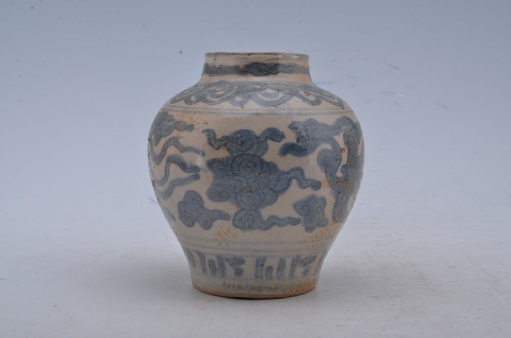 清灰釉青花(huā)龍鳳牡丹紋雙獅耳瓶