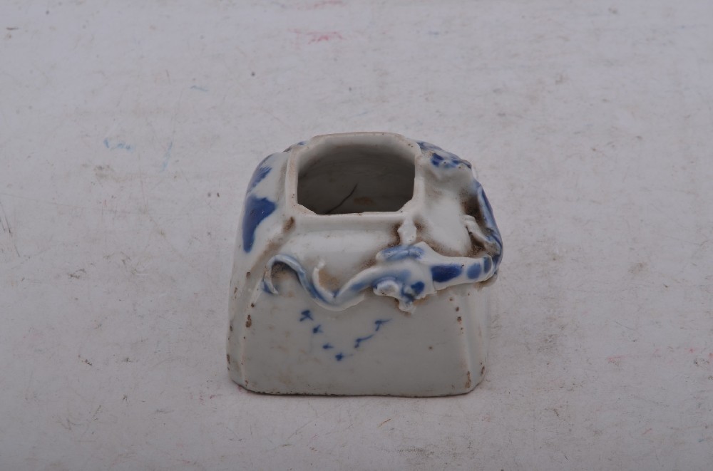 清灰釉青花(huā)龍鳳牡丹紋雙獅耳瓶