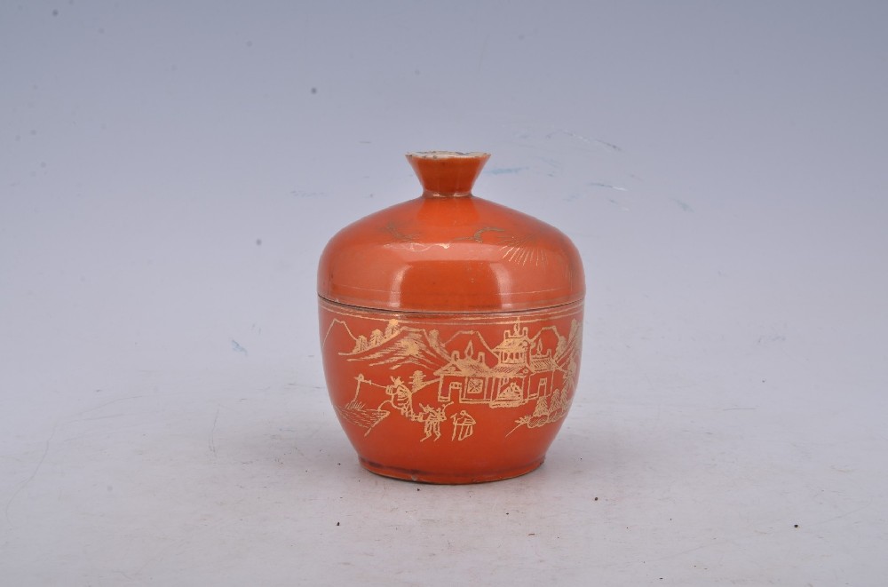 民(mín)國(guó)粉彩山(shān)水(shuǐ)人(rén)物(wù)紋象耳戽桶瓶