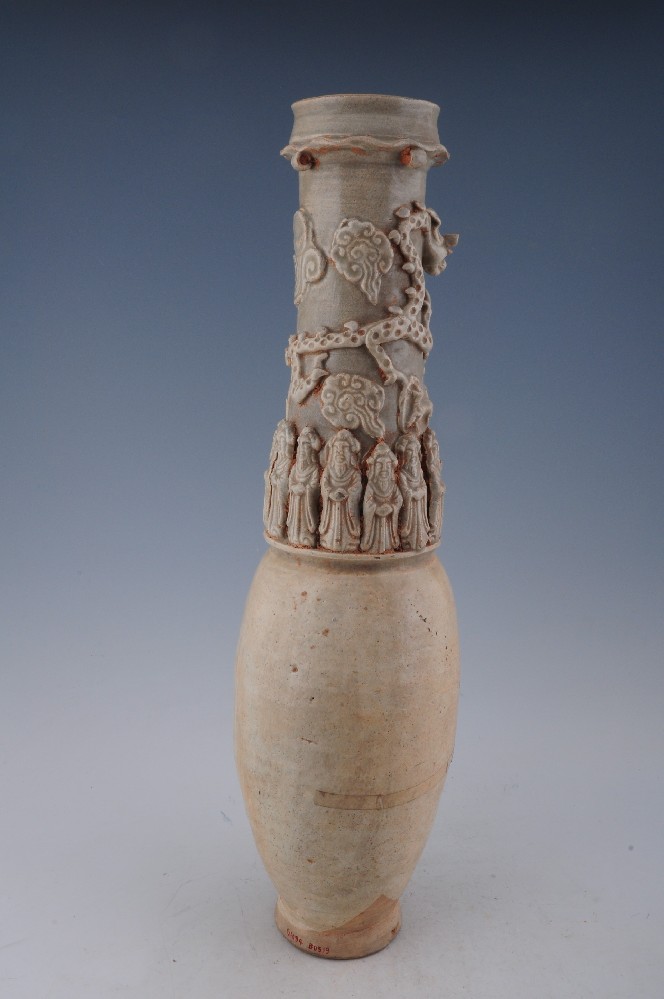 清灰釉青花(huā)龍鳳牡丹紋雙獅耳瓶
