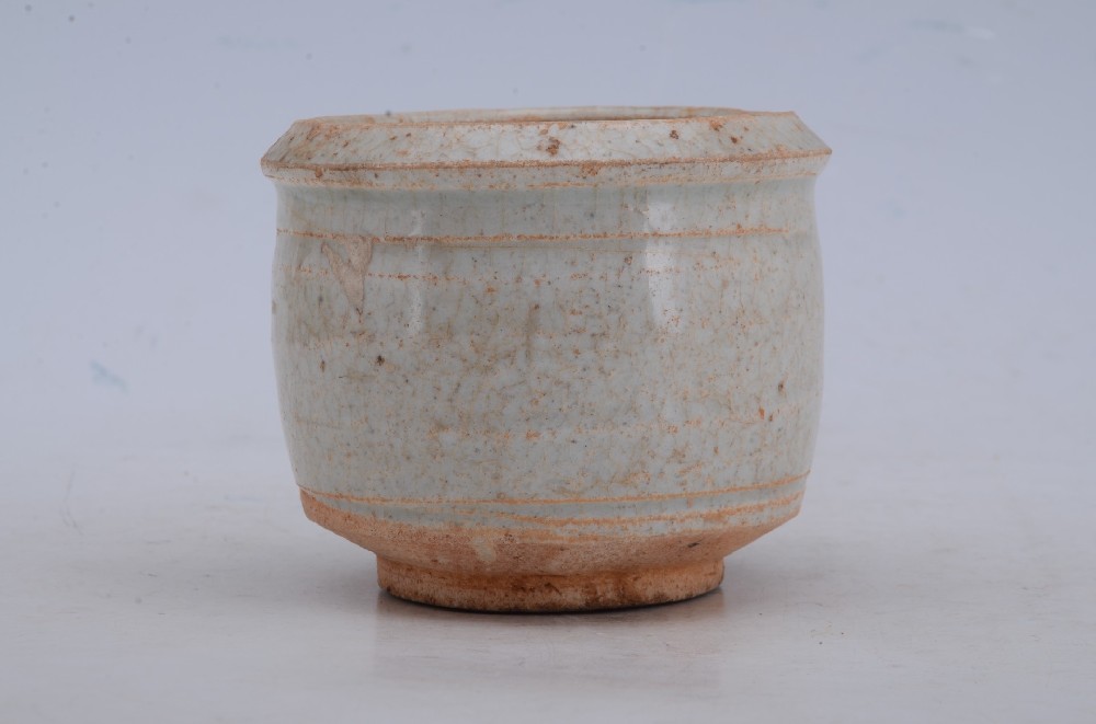 民(mín)國(guó)白(bái)釉紫口螭耳六方瓶