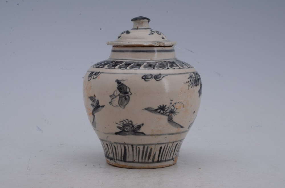 清灰釉青花(huā)龍鳳牡丹紋雙獅耳瓶