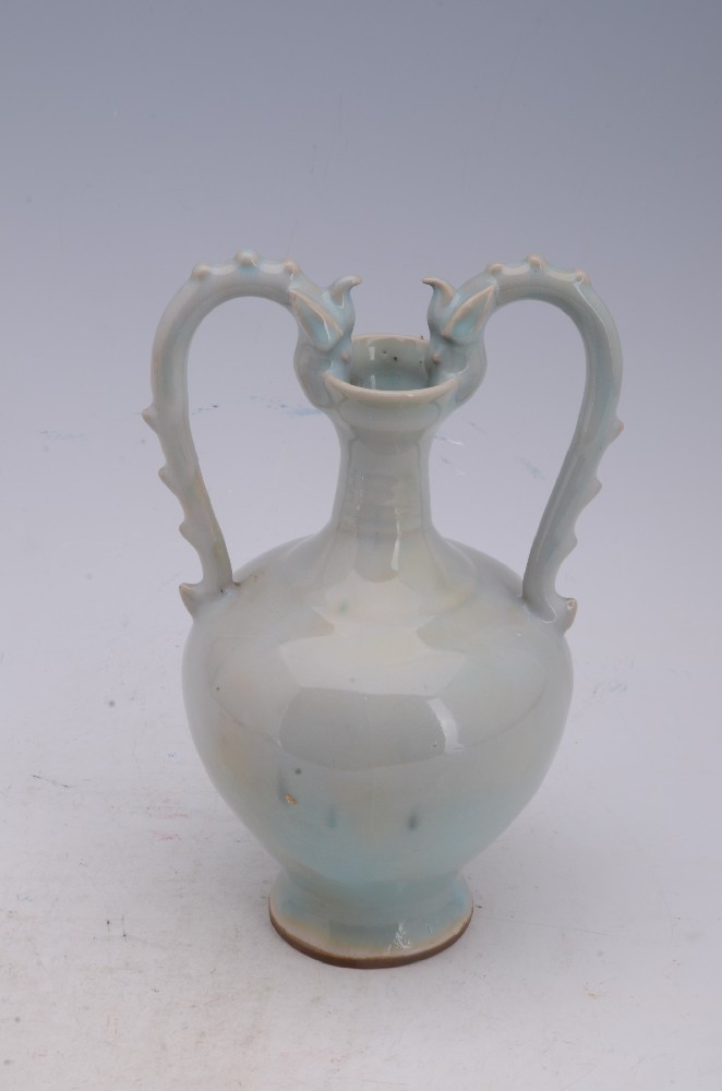 清灰釉青花(huā)龍鳳牡丹紋雙獅耳瓶