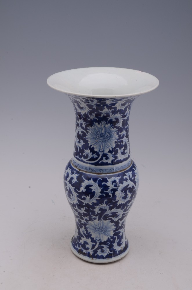 清灰釉青花(huā)龍鳳牡丹紋雙獅耳瓶