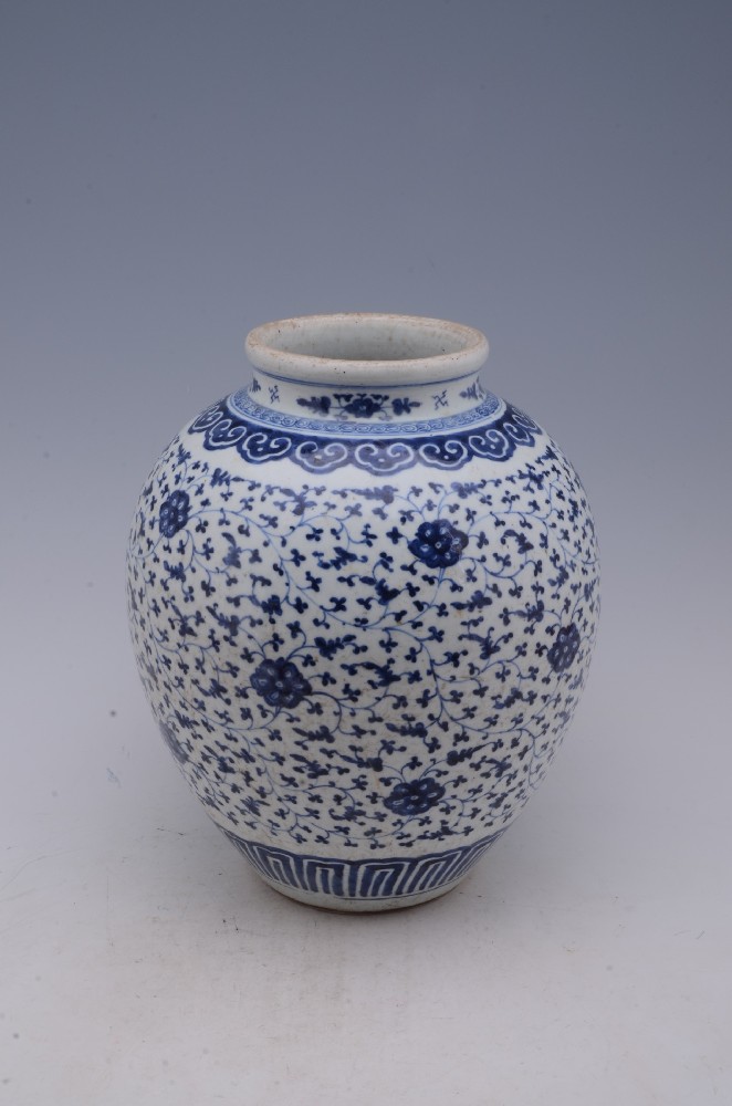 清灰釉青花(huā)龍鳳牡丹紋雙獅耳瓶