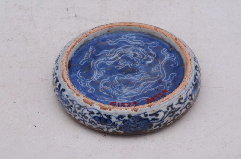 清灰釉青花(huā)龍鳳牡丹紋雙獅耳瓶