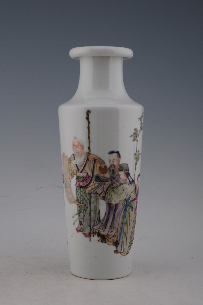 民(mín)國(guó)粉彩山(shān)水(shuǐ)人(ré✔><n)物(wù)紋象耳戽桶瓶