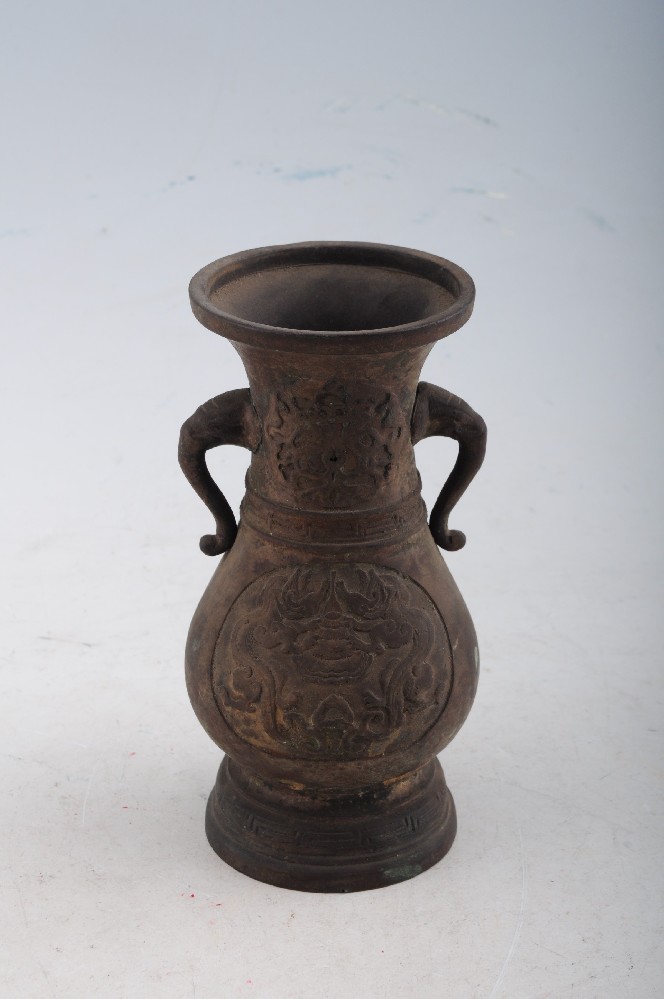 民(mín)國(guó)白(bái)釉紫口螭耳六方瓶