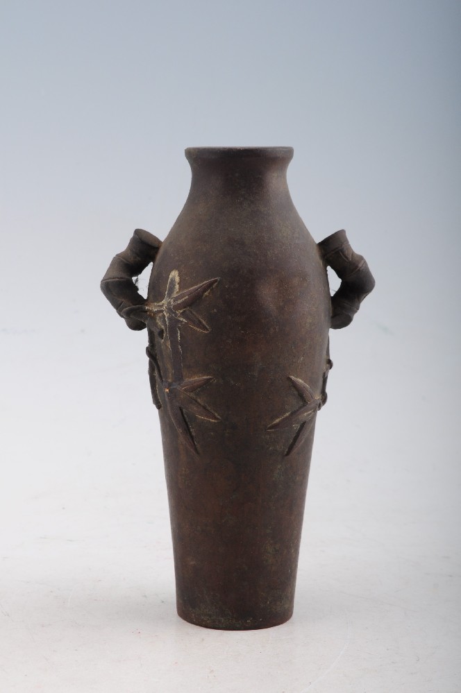 民(mín)國(guó)白(bái)釉紫口螭耳六方∞±瓶