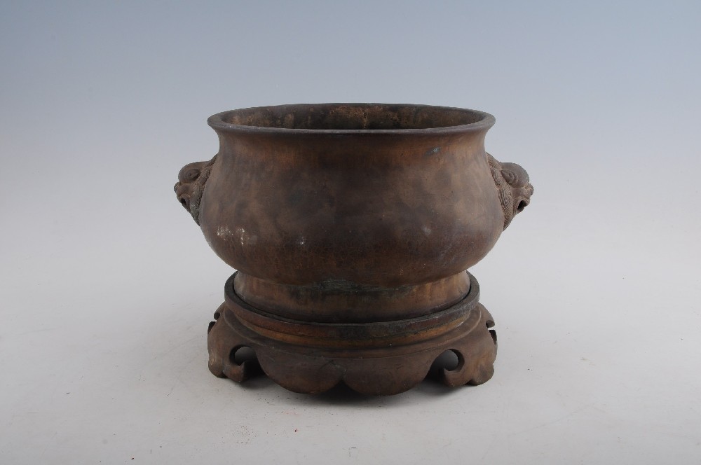 清灰釉青花(huā)龍鳳牡丹紋雙獅耳瓶