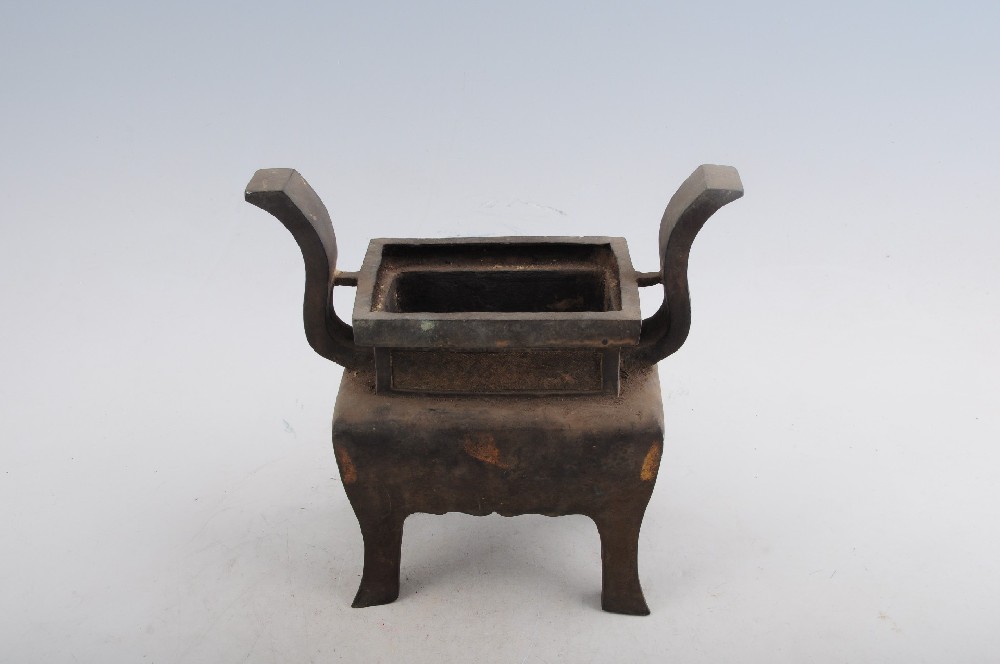 清回紋立耳四足方銅爐