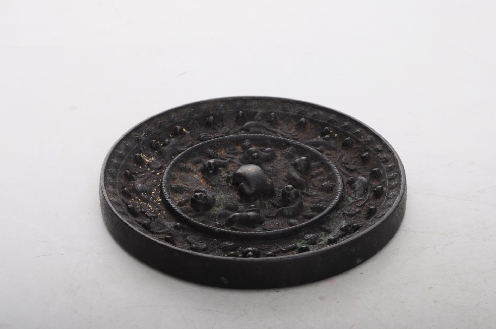 清灰釉青花(huā)龍鳳牡丹紋雙獅耳瓶