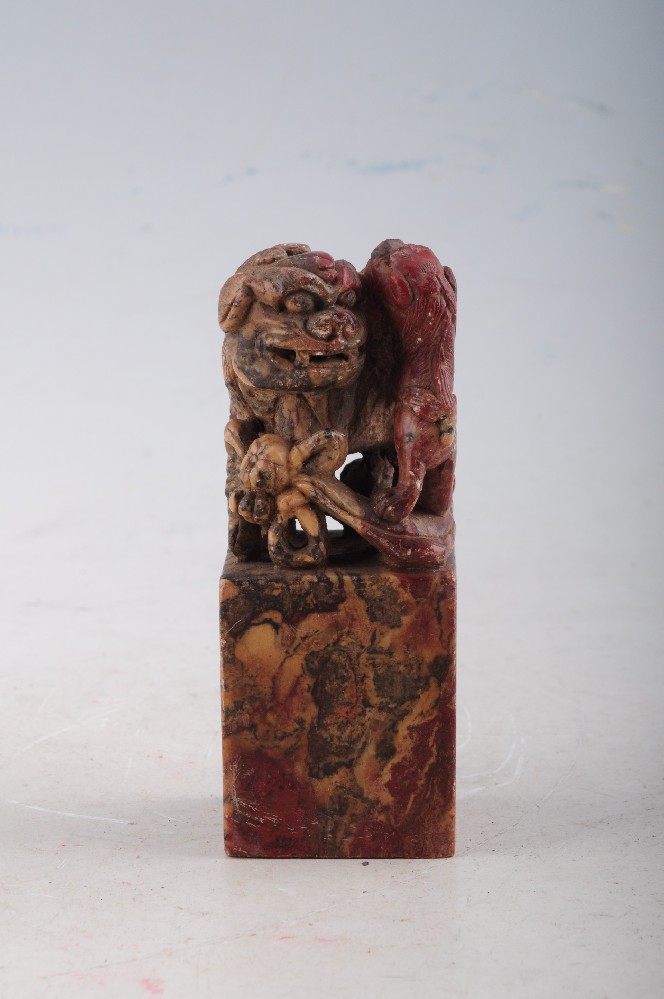 清灰釉青花(huā)龍鳳牡丹紋雙獅耳瓶