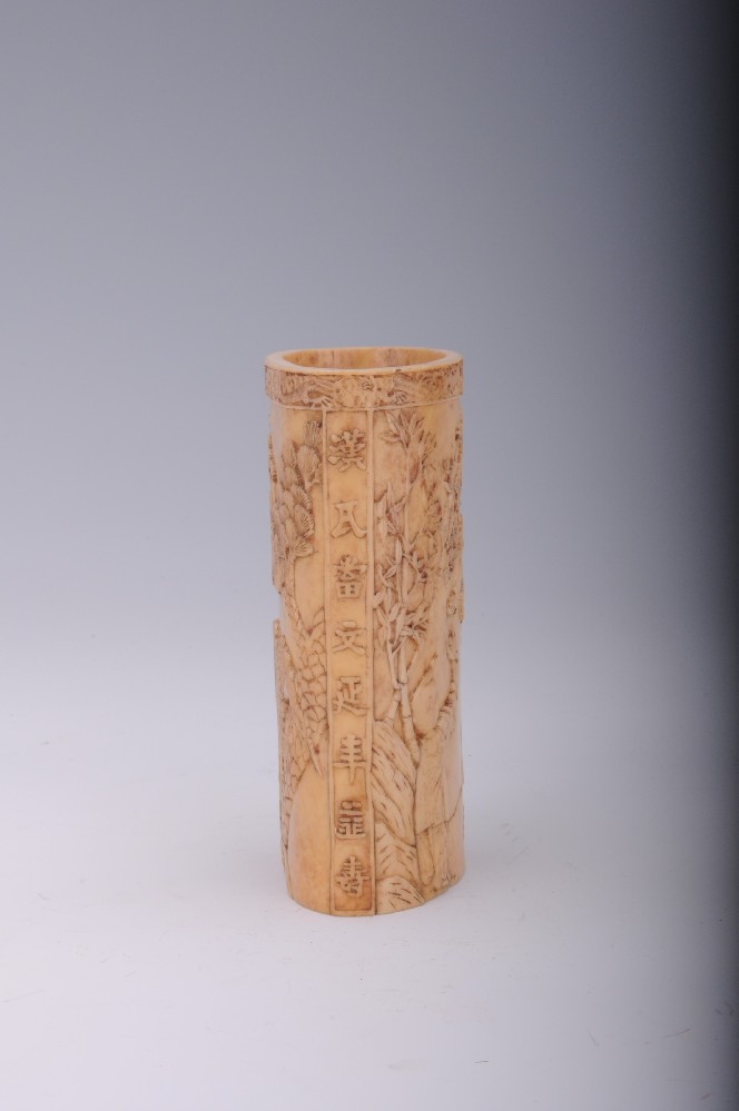 清松鶴人(rén)物(wù)紋象牙筆(bǐ)筒
