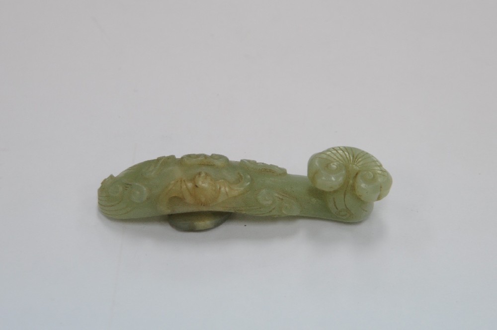 清如(rú)意首浮雕如(rú)意蝠紋青玉¥δ&×帶鈎