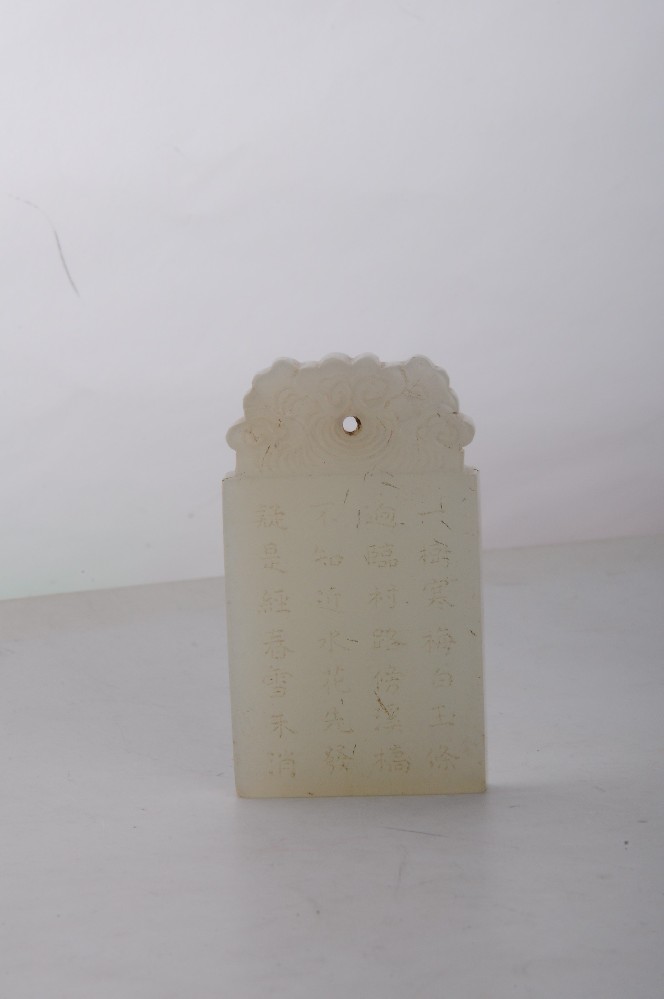 清白(bái)玉浮雕雲紋線刻梅花(huā)詩文(w✘★£Ωén)長(cháng)條形佩件(jiàn)