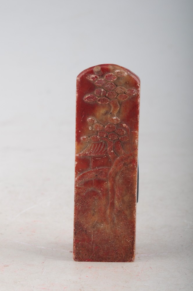 清浮雕松樹(shù)山(shān)石紋方石印料