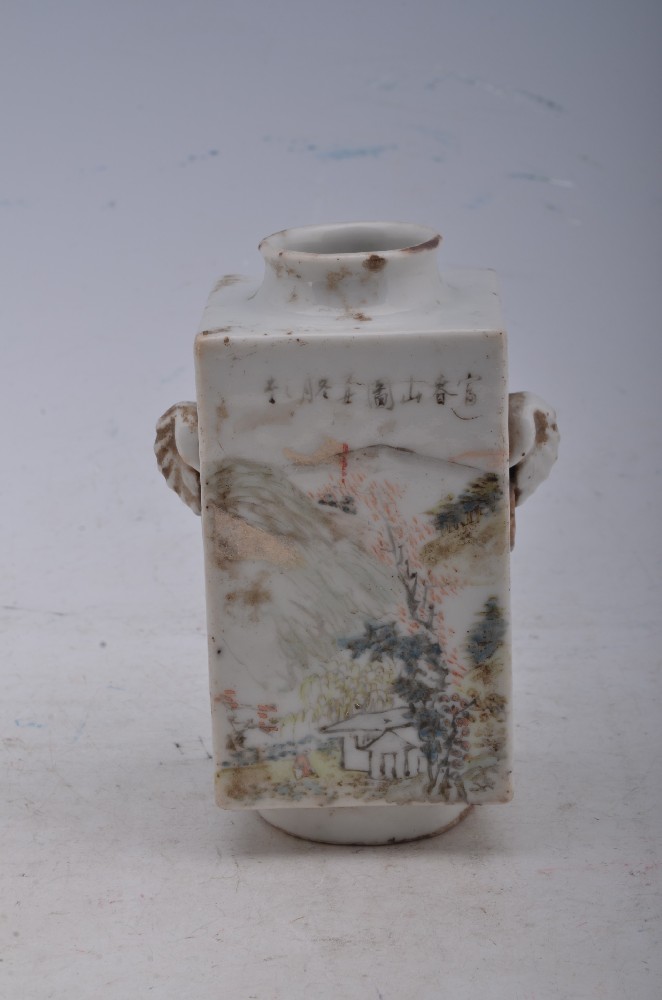 民(mín)國(guó)淺绛彩富春山(sh♦"ān)圖象耳琮式瓶