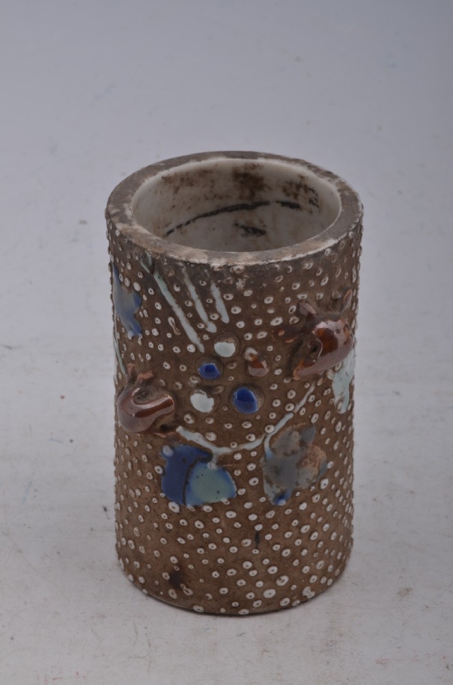 清露胎珍珠釉松鼠葡萄紋筆(bǐ)筒