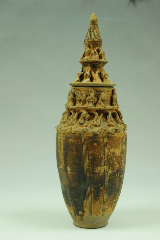 宋醬褐釉堆塑人(rén)物(wù)紋瓶