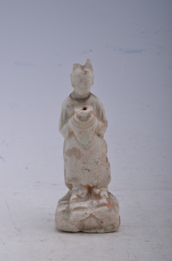 宋青白(bái)釉持物(wù)侍女(nǚ→β≥)立俑