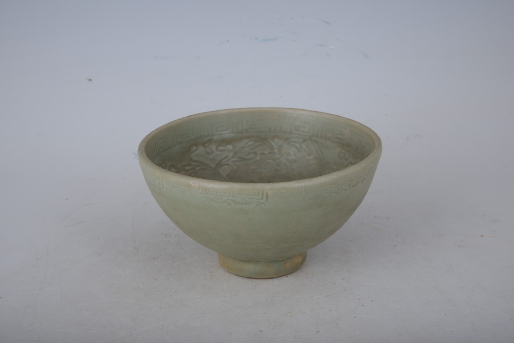 清青釉印花(huā)卉紋碗