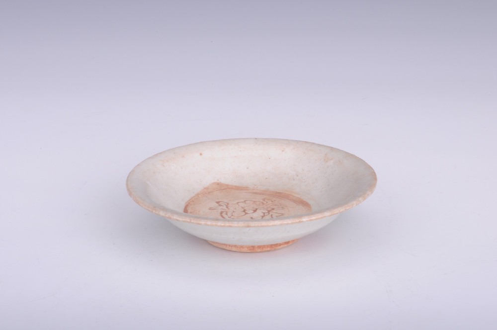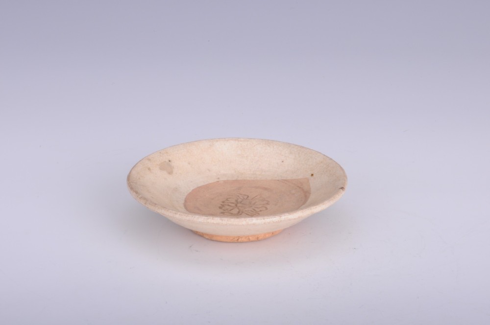 元乳白(bái)釉牡丹紋圈足碟