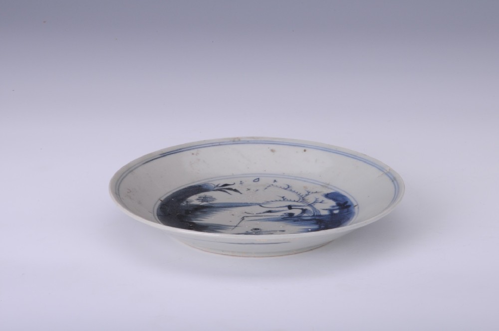清青花(huā)漁翁垂釣圖圈足盤