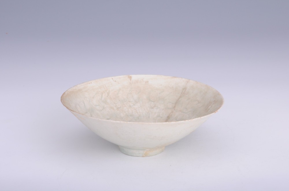 南(nán)宋青白(bái)釉刻劃篦紋敞口碗