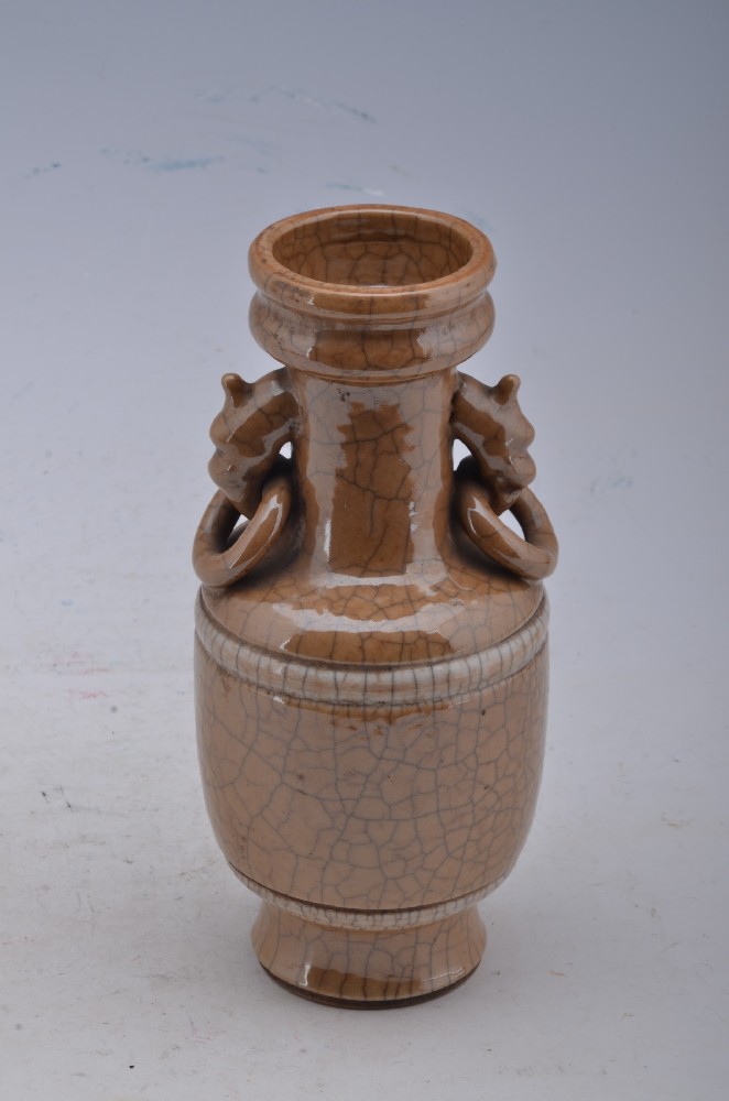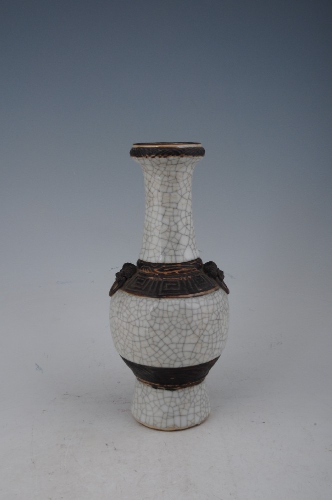 清仿哥(gē)釉鐵(tiě)骨泥獅耳瓶