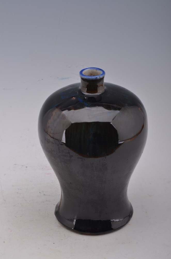 清窯變虎皮斑釉堆塑梅花(huā)紋雙耳瓶