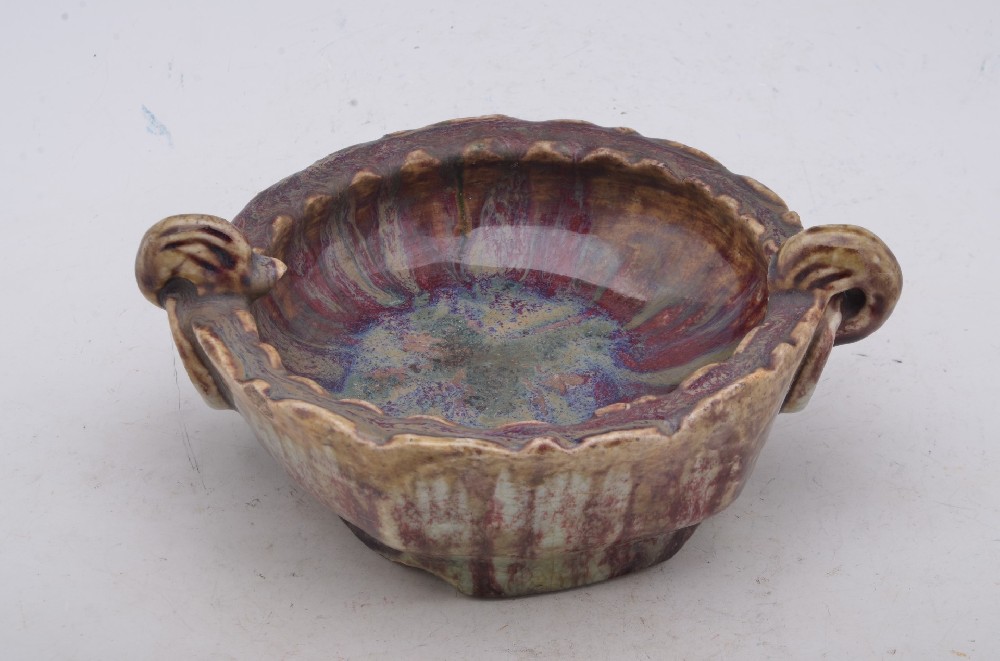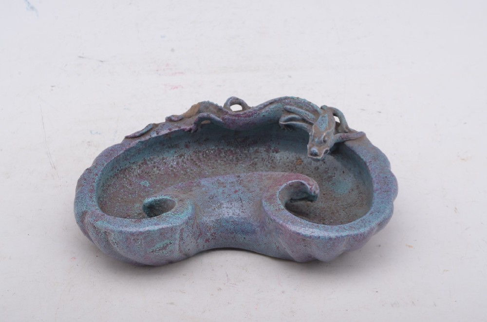 清鈞紅(hóng)釉堆塑螭龍紋月(yuè)牙形水(s↔₽huǐ)盂